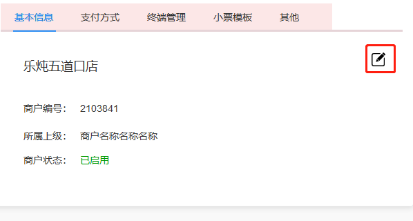 选中商户时,在页面右侧,有一个编辑按钮。点击后可以修改该商户的基本信息。