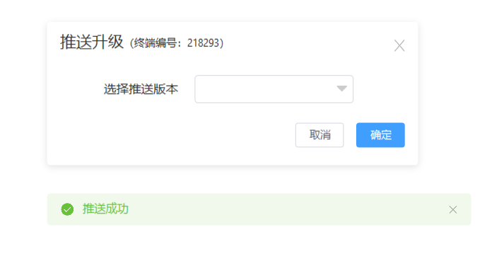 点击推送升级后,选择需要推送的版本,点击确认会立刻发送升级指令给该终端。