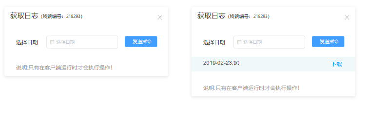 点击获取日志后,选择需要读取的时间,点击发送指令,就可以查看当时的日志。