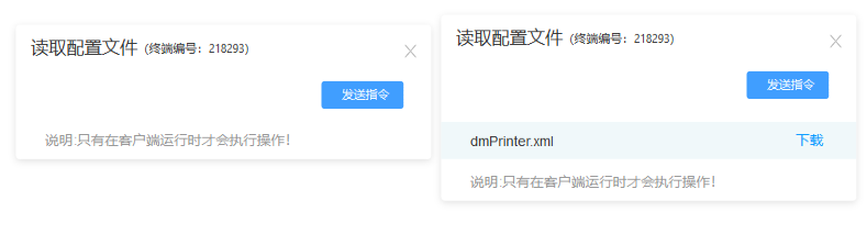 点击读取配置文件,再点击发送指令,该终端会将本地配置文件上传到后台,我们可以点击查看。