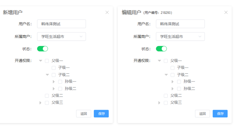 新增或编辑用户时,可以对用户的基本信息进行修改,也可以修改该用户的操作权限。